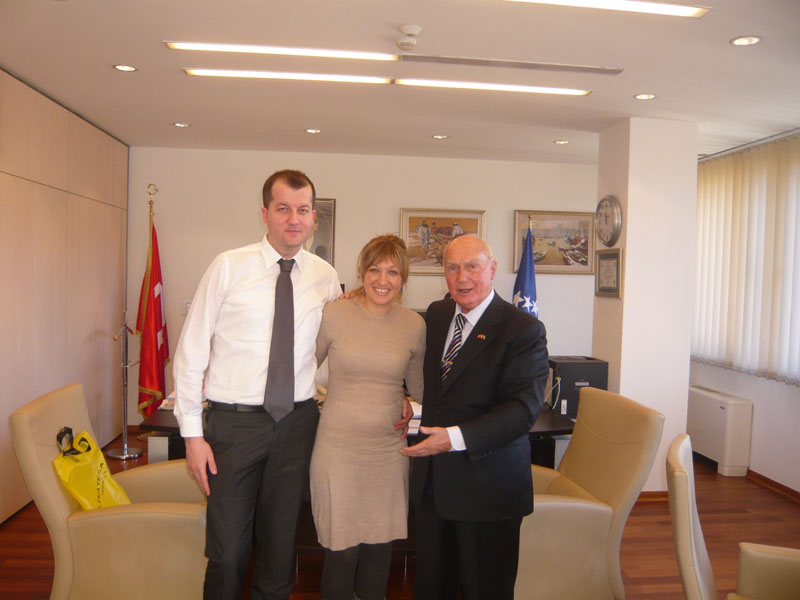 Bosna Hersek Fahri Konsolosu Ahmet Kemal Baysak, Melbourne’de kendilerine ev sahipliği yapan Kerim Şehoviç, eşi Jasminka, oğlu Fedja kızı Naca Şehoviç’e ve diğer Bosna Hersekli dostlarımıza, kenti tanıtıp bilgi verdikleri için teşekkürlerini sundu. Baysak, Bosna Hersek Fahri Konsolosluğu ile kurucusu ve onursal başkanı olduğu Türkiye Bosna Hersek Kültür Dernekleri Federasyonu’nun flamalarıyla “Türkiye’deki Boşnaklar” albümünü hediye etti. 11 Ocak 2013