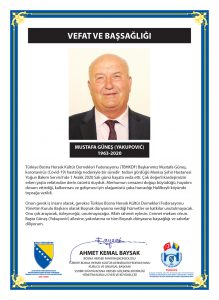 Türkiye Bosna Hersek Kültür Dernekleri Federasyonu Yönetim Kurulu Başkanı Mustafa Güneş’in (Yakupović) Boşnak dünyasına hizmetleri unutulmayacak. Güneş ailesinin, yakınlarının ve tüm Boşnak dünyasının başı sağ olsun.