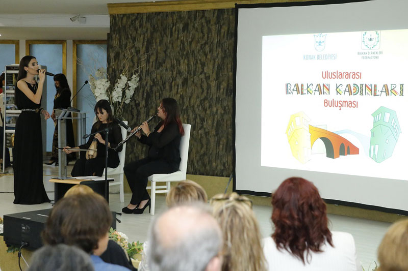Uluslararası Balkan Kadınları Buluşması, Kültürpark Nikah Salonu’nda gerçekleştirildi. Konak Belediyesi ve İzmir Balkan Dernekleri Federasyonu işbirliğinde düzenlenen etkinliğe İzmir’de yaşayan Balkan göçmeni kadınlar yoğun ilgi gösterdi. Konak Belediye Başkanı Sema Pekdaş’ın ev sahipliği yaptığı gecede Türkiye ve Balkan Coğrafyası arasındaki birliği geliştirmek, Balkan ülkelerinde yaşayan kadınlarla İzmirli kadınları bir araya getirmek amacıyla çalışan Balkan kökenli kadınlar ödüllendirildi. Medya, siyaset, moda, resim, kültür-sanat, akademi alanlarında çalışmalarını sürdüren ve her biri kendi alanında önemli izler bırakmış kadınlara plaket verildi.