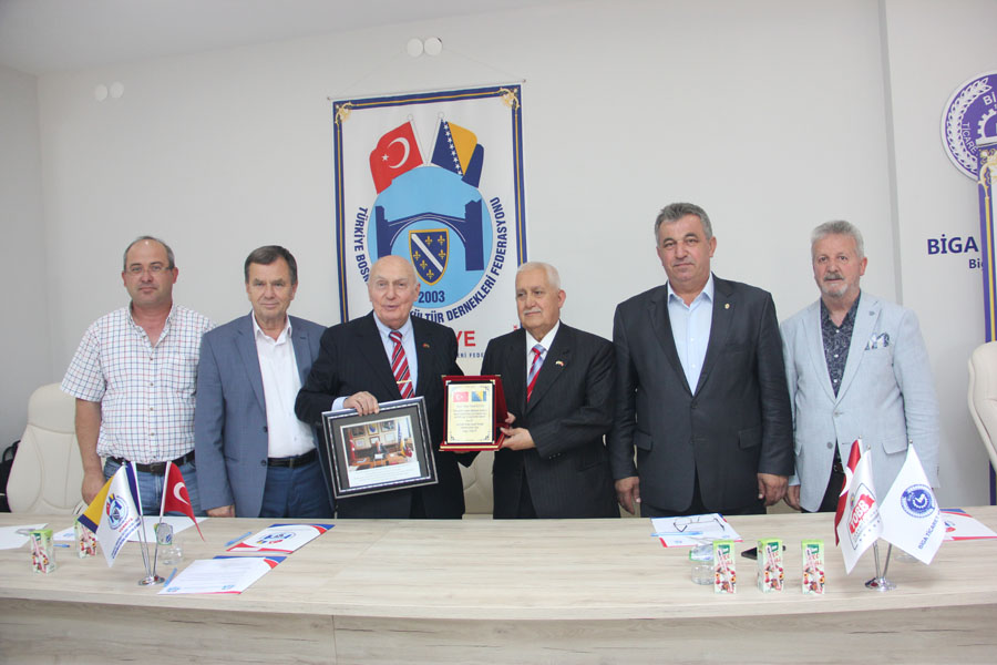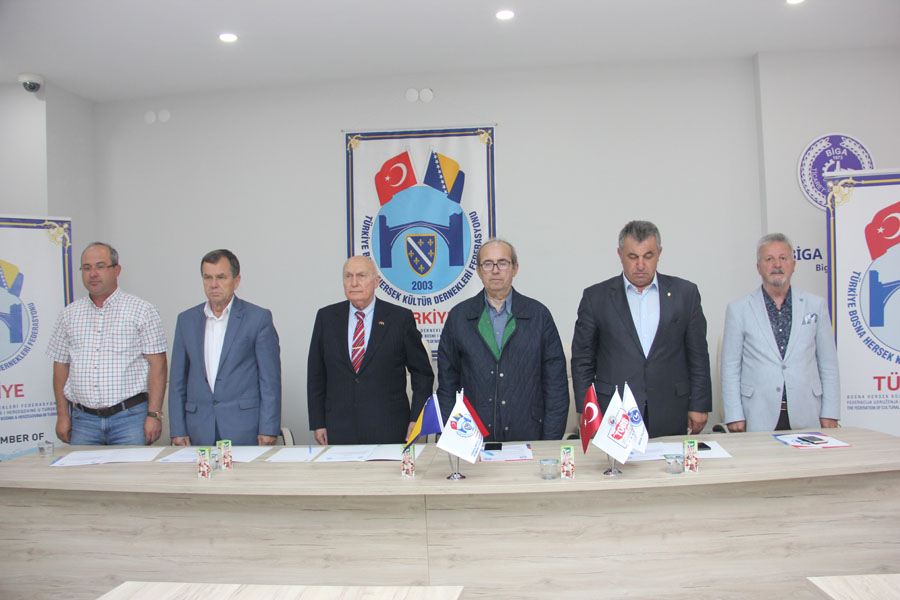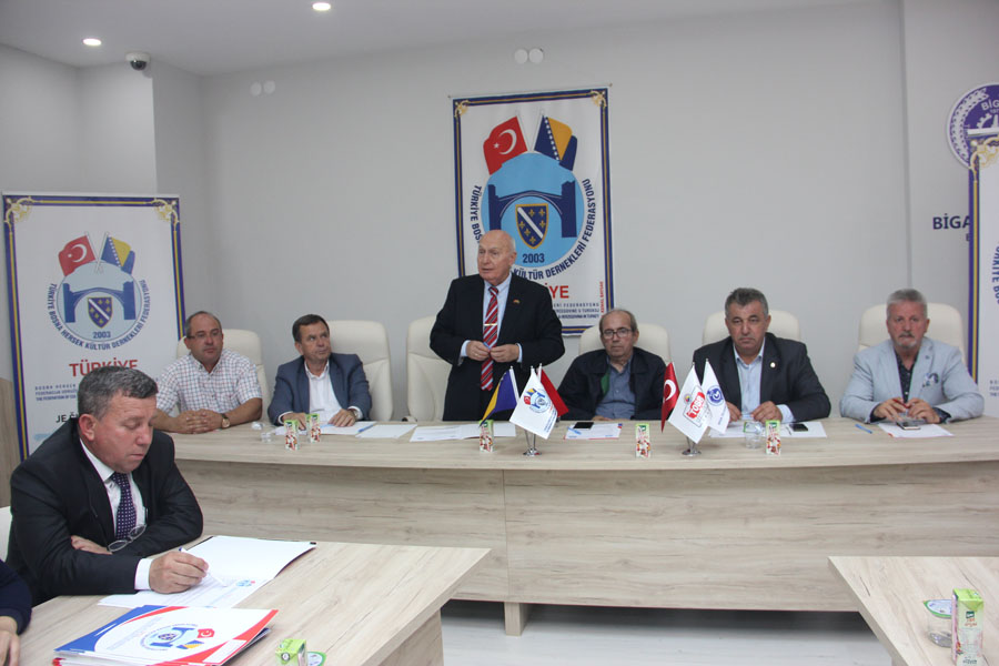 Türkiye Bosna Hersek Kültür Dernekleri Federasyonu (TBHKDF) Yönetim Kurulu Biga’da toplandı. TBHKDF Yönetim Kurulu Başkanı Eşref Temiz’in başkanlığındaki toplantıya Biga Bosna Hersek Kültür ve Yardımlaşma Derneği ev sahipliğinde gerçekleştirildi. Biga Ticaret ve Sanayi Odası Meclis Salonu’ndaki toplantıya TBHKDF Kurucusu ve Onursal Başkanı Bosna Hersek Fahri Başkonsolosu Ahmet Kemal Baysak de katıldı.